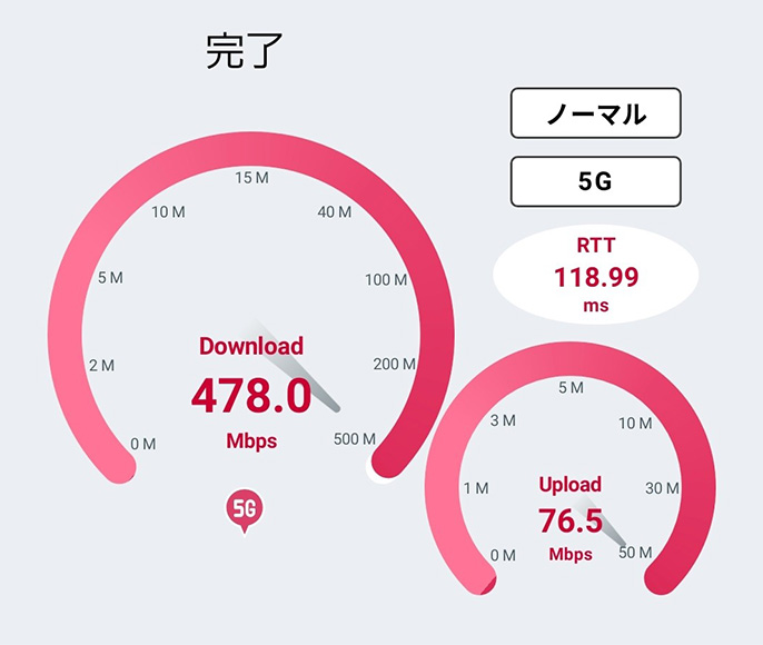 開業後、明治安田J3リーグの混雑時間帯に実際の通信速度を測定しました。