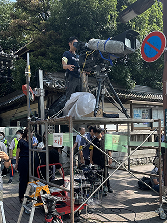 地元放送局である福岡放送(FBS)さまは、この追い山笠馴らし(おいやまならし)の放映において課題を抱えていました。懸案となっていたのは、萬行寺(まんぎょうじ)の前に配置されるカメラです。