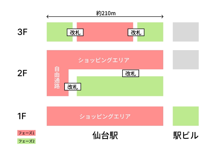 仙台駅の通信改善は、今後も継続して行っていきます。東北支社における通信改善取組み宣言※のひとつである「2025年3月末までに、仙台駅周辺の設備容量を最大2倍に増強」の達成に向け、フェーズ3としてさらなる改良が進行中です。この工事が完了すれば、仙台駅内と周辺の通信はさらに速度が向上する見込みです。
