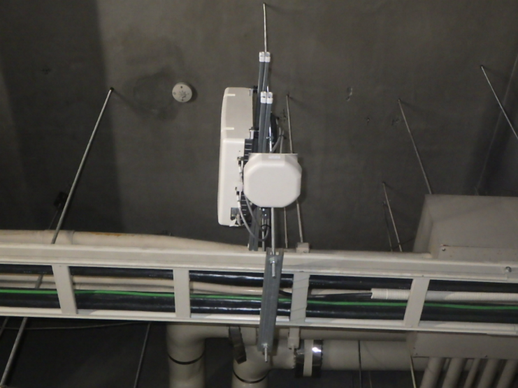 工事をしている場所では基地局の運用を一時的に停止することから電波が弱くなってしまうケースもあるため、周辺基地局のアンテナ角度を変更し電波の到来範囲を調整することで、エリアに穴をあけないよう対策を行いました。また、屋内に機器を設置するにあたり、ケーブルを通すためのスペース確保のほか、廃熱や耐火などの処理も考慮する必要があり、これらの対応が工程の複雑化につながりました。