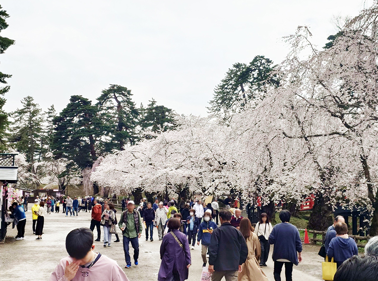 多くの人で賑わう「弘前さくらまつり」の様子