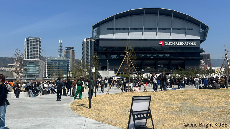 観客席は視認性の高い馬蹄型(コの字型)に配置され、どの方向からでも見やすい常設の大型LED壁面ビジョンや、360度センターハングビジョン、さらに場内を帯状に取り囲む全長183メートルのLEDスクリーンが連動し、迫力ある映像演出で観客の一体感を高めます。このアリーナを中核とする新港第2突堤全体が、神戸の新たなランドマークエリア「TOTTEI」として運営されています。アリーナに併設するレストラン・カフェ10店舗とグッズストア1店舗は日常的に営業しています。また、施設内には、ブリュワリーやBBQレストランを併設し、神戸の海と六甲山の眺望を望める「緑の丘」を備えたパークエリア「TOTTEI PARK」や、潮風を感じられる海沿いの遊歩道「TOTTEI WEST CORRIDOR」が整備されています。アリーナの南側には誰もが立ち寄れる開放的な広場「TOTTEI PARK」が整備され、これらの施設を利用するために神戸市民や観光客が毎日TOTTEIに集い、神戸の新たなにぎわいを生み出しています。