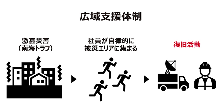 大規模災害に対応するには、全国から人員と機材を素早く集め、できるだけ早く復旧作業をはじめることが欠かせません。今回の訓練で特に重視したのが、この初動対応力です。
