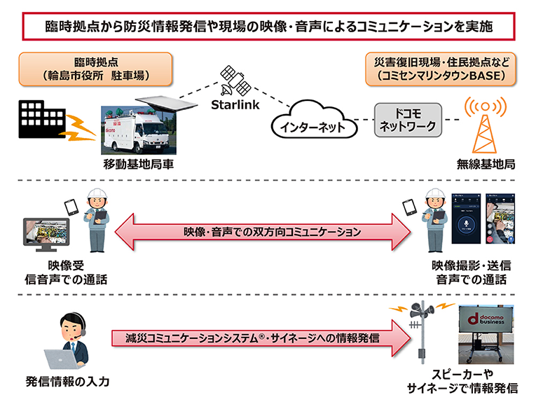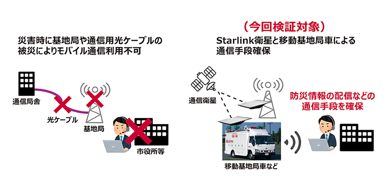 災害時、孤立した地域に避難指示などの「命を守る情報」を届けるには、確実な音声伝達が欠かせません。実験では情報を発信する側の基地局を通信網に接続するための通信回線として地上の光回線を使わず、「Starlink」経由で防災放送を流すことに成功。既存の設備が使えない状態でも、住民へ避難を呼びかけられる可能性を示しました。