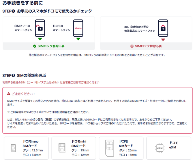 - 「ドコモオンラインショップ」にて、お手元のスマホがドコモで使えるかチェック