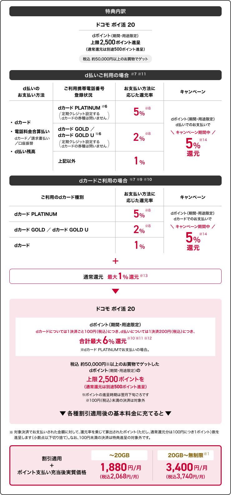 • 20GB~無制限ドコモ ポイ活20