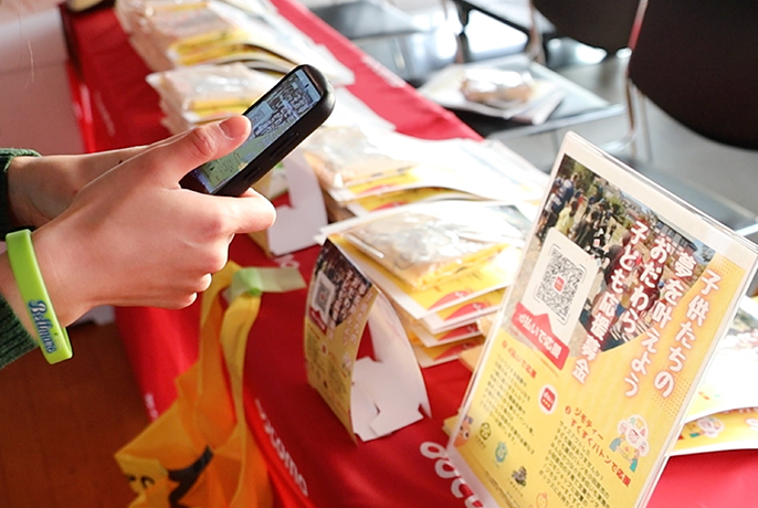 小田原市内各所に「d払い」で応援募金ができるQRポップを設置。QRコードを読み込むことで、地域貢献につながる募金を気軽に行うことができます。お預かりした募金は、支援が必要な、小田原の子どもたちのために、将来に向けた職業体験や地元スポーツチーム選手と触れ合うワクワクする体験、日常にあったらうれしい日用品をお届けするために使われます。
