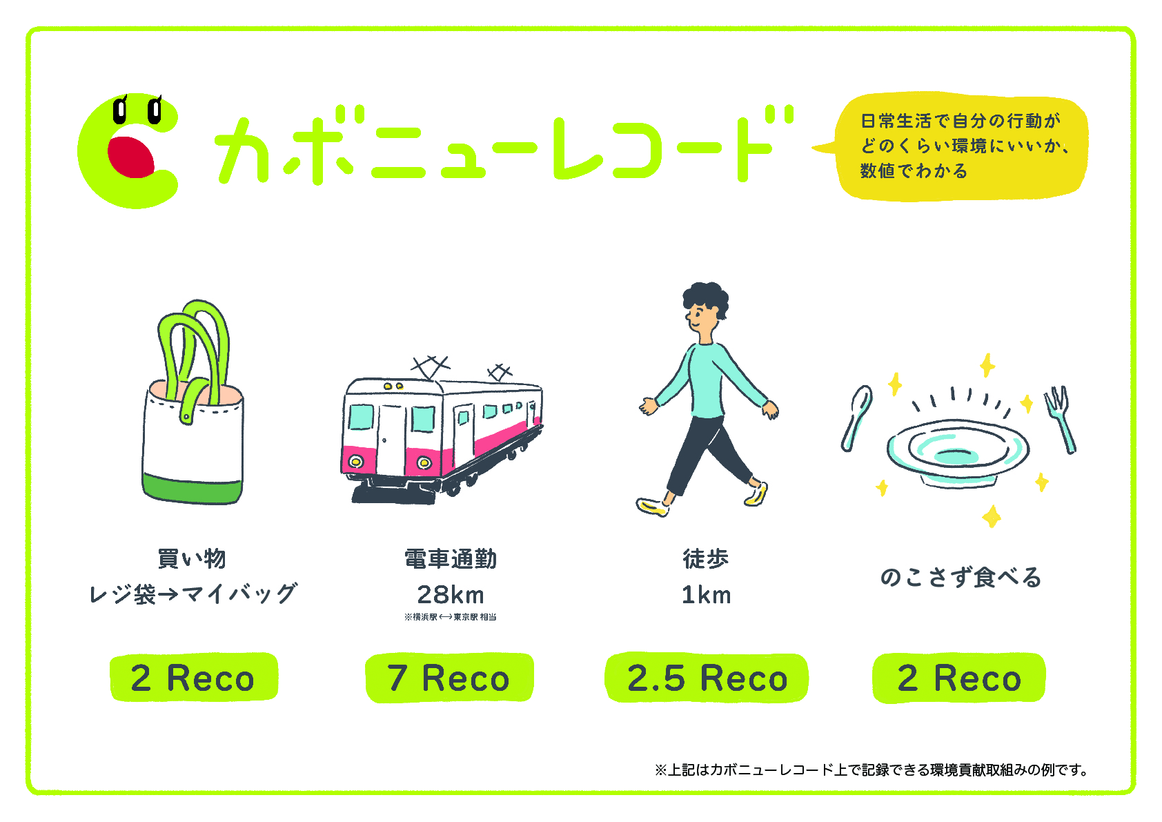また、お客さまやパートナー企業とともに社会全体の脱炭素にも取組んでいます。「カボニューレコード」も、そのひとつです。