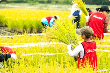 ドコモでは、耕作放棄地の田んぼを借り受け、育てたお米を児童支援施設などへ寄付する田んぼプロジェクトを行っています!