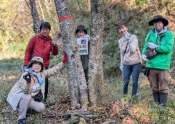 「モニタリングチーム」は、オオムラサキの幼虫が越冬できるようエノキの根元の落ち葉だまりの修復を行いました。