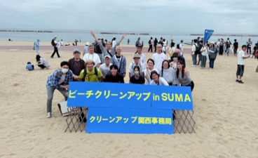 須磨駅を降りてすぐの須磨海岸で19名で参加しました。