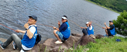 ドコモ鹿児島グループとNTT西日本鹿児島エリア各社の社員およびその家族が藺牟田池に集合し、「外来魚駆除活動」を行いました。