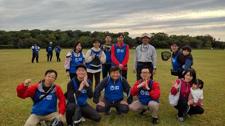 ドコモ鹿児島グループとNTT西日本鹿児島エリア各社の社員およびその家族が藺牟田池に集合し、「外来魚駆除活動」を行いました。