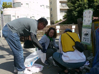 当日は多くの参加者とともに市街地でゴミ拾いを行い、大量のゴミを回収しました。