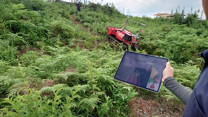 高齢化・担い手不足が問題となっている林業分野において、ドコモは、株式会社筑水キャニコム、千葉県森林組合と結んだコンソーシアムの代表者として、林野庁の実証事業による「自動運転型下刈機械の植栽フィールド運用検証」の実証実験を行いました。