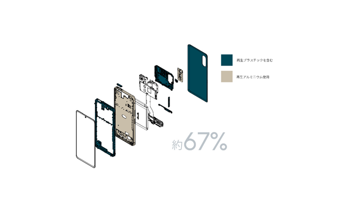 スマートフォンの筐体で使用されるプラスチックの削減に向け、22年夏モデルから再生プラスチック材や、廃棄予定の漁網を一部使用したモデルを採用するなど、環境に配慮した素材を積極的に推進しています。