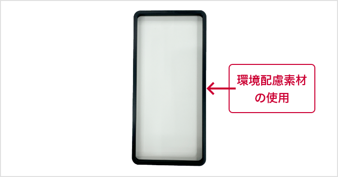 その他にも、ガラスフィルムやその貼付用治具、同梱される緩衝材でリサイクル材を活用するなど、環境配慮に取組んでいます。