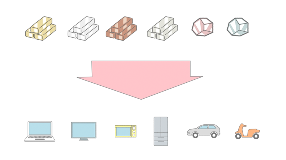 回収した資源は、自動車やさまざまな家電の電子部品などに生まれ変わります。