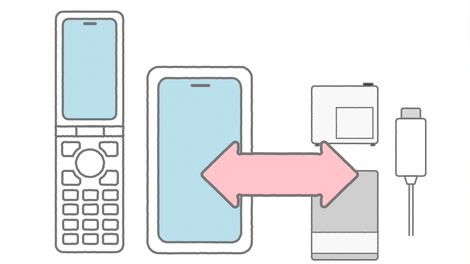 Android スマートフォン・ドコモ ケータイ・iPhone・他社端末間のデータ移行などを行うことができます。