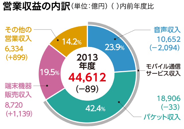 月々サポートの影響などにより音声収入が減少。一方スマートフォンの積極的販売により端末機器販売収入が増加。