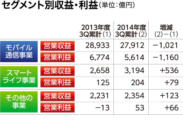 新料金プランや「月々サポート」の影響などにより、モバイル通信サービス収入が減少。スマートフォンの販売数増などにより端末機器販売収入は増加。