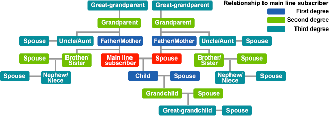 This service can also be used by parents and children who are not living in the same house. Relatives within the third degree of kinship can form a Family Discount group regardless of whether or not they live together.