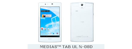 | MEDIAS™ TAB UL N-08D | September or October | World’s lightest tablet2 with 7-inch display weighs 249g and has 7.9mm-thin body. Comes with 1.5GHz dual core CPU and HD haptics vibration technology for extra-tactile touch screen. | |