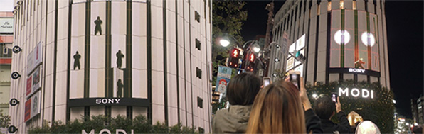As part of the WOW! JAPAN promotional campaign, DOCOMO is presenting daily showings of animated ninja projected on the Shibuya MODI building's outdoor screen. Two versions of the 90-second show are aired at various times day and night during intervals when all vehicle traffic stops at the large scramble intersection in front of the big screen. Airings will last through November 30 (see show times from the link below).