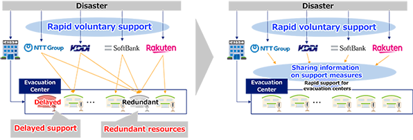In the event of a large-scale disaster, telecommunications carriers provide crucial support to affected areas, often deploying communication services for evacuation centers. Previously, these efforts were conducted independently, sometimes leading to redundant resources and regional disparities in services. This new system promotes a collaborative approach through information sharing, enabling carriers to coordinate their resources and ensure timely, equitable, and comprehensive support to those in need.