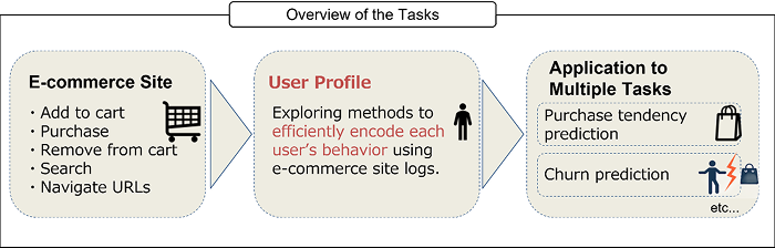 Figure 2. Outline of the Award-Winning Approach For the statistical purchase features, DOCOMO created variables that specifically captured a wide range of behavioral statistics, such as the intervals between events like purchases or cart additions, and the number of items purchased. These features contributed not only to addressing short-term tasks such as churn and purchase prediction, but also to identifying long-term behavioral trends, thereby achieving high predictive accuracy across both public and hidden tasks.