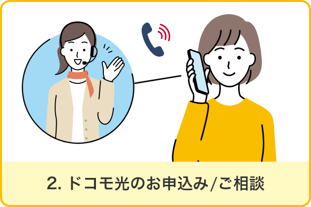 ドコモ光のお申込みはドコモ光お申込み/ご相談フォームで入力受付後、担当オペレーターからお電話いたします。