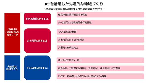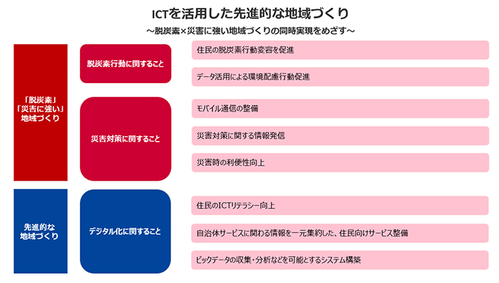 3者は相互の連携を強化し、ICT活用による先進的な地域づくりを推進することで、あんしん・安全で暮らしやすく、環境に配慮した持続可能な地域づくりをめざします。