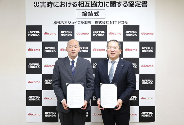 株式会社ジョイフル本田(本社:茨城県土浦市、代表取締役社長:平山 育夫 以下、ジョイフル本田)と、株式会社NTTドコモ(本社:東京都千代田区、代表取締役社長:前田 義晃 以下、ドコモ)は、災害発生時の円滑な相互協力により、被災地および被災地域における復旧活動の最大化を図ることを目的に、「災害時における相互協力に関する協定」を2025年4月11日(金曜)に締結いたしました。