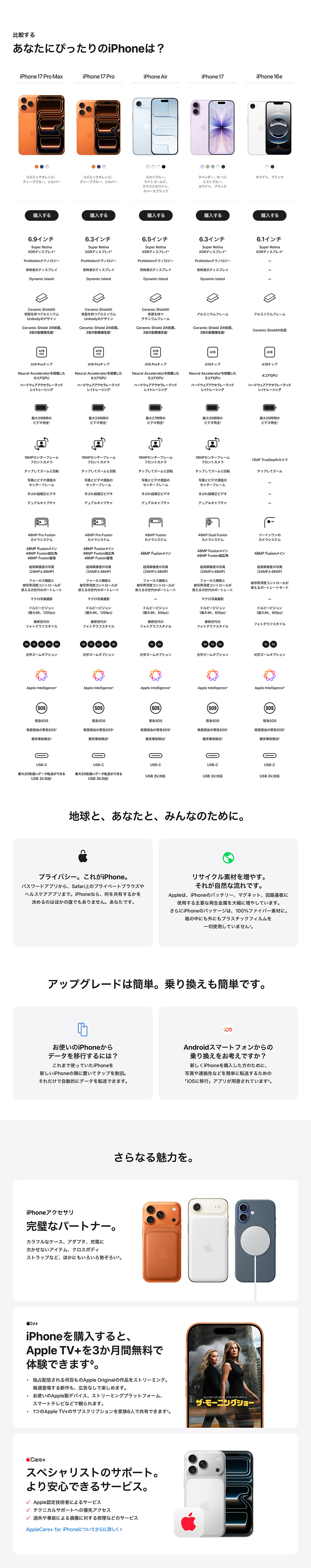 - Apple、Appleのロゴ、AirPlay、AirPods、Apple Music、Apple Pay、Apple Pencil、Apple TV、Apple Watch、Ceramic Shield、Dynamic Island、Face ID、FaceTime、iBooks、iPad、iPhone、iTunes、Lightning、Magic Keyboard、MagSafe、ProMotion、Siri、Touch ID、TrueDepth、True Toneは、米国および他の国々で登録されたApple Inc.の商標です。iPhoneの商標は、アイホン株式会社別ウインドウが開きますのライセンスにもとづき使用されています。App Store、Apple Arcade、AppleCare+、Apple TV+、iCloudは、Apple Inc.のサービスマークです。TM and © 2025 Apple Inc. All rights reserved.
