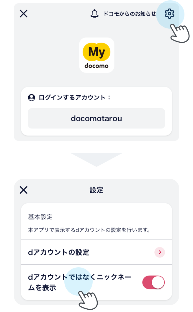 dアカウントを変更した場合は、新規アカウント扱いとなり、すでにアプリに登録している変更前のdアカウントでは情報の更新ができなくなります。変更後のdアカウントでアプリをご利用いただくためには変更したdアカウントのID/パスワードを「アカウント追加方法」を参照の上、アプリに追加してください。