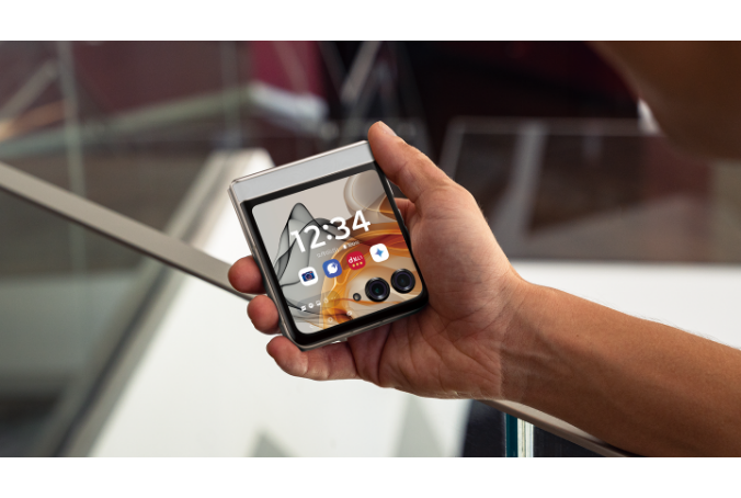 モトローラが独自で開発したヒンジにより、メインディスプレイは折り目がなめらかで目立たない工夫がされているので、違和感なく操作ができます。