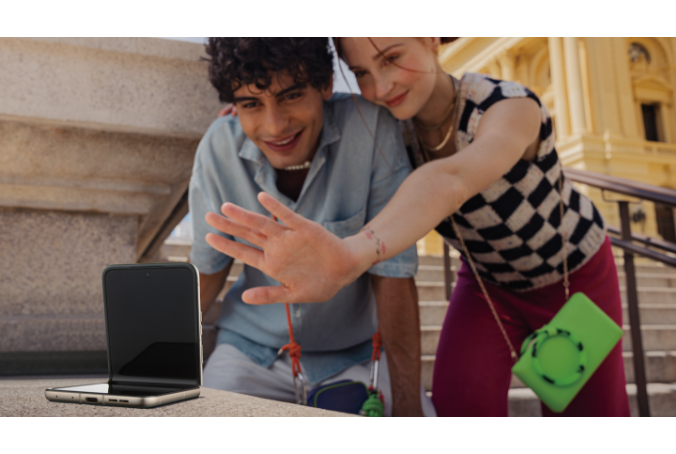 多機能の3.6インチアウトディスプレイを使用して、本体を折りたたんだ状態でさまざまな操作が可能です。使えるアプリの種類に制限もありません※2。大型のアウトディスプレイでプレビューを見ながら自撮りをすることもできます。