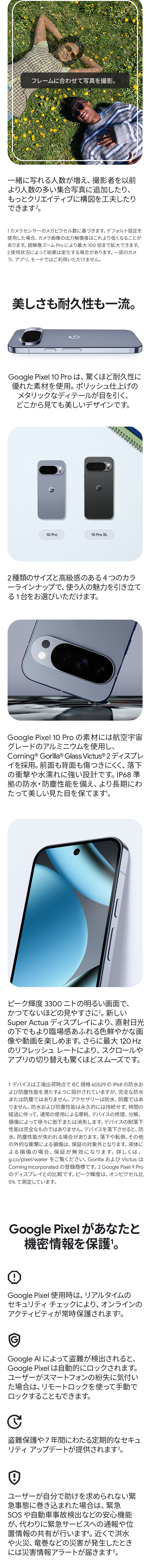 Google Pixel 10 Proの製品アップデート情報やバックアップ方法、取扱説明書などをご確認になれます。