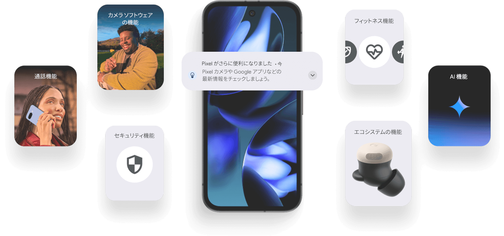 をご覧ください。Google Pixel の一部の Pixel Drop については、提供状況が異なる場合があります。