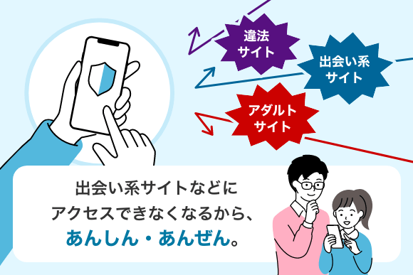 設定なしで出会い系サイトなどの有害不適切なサイトへのアクセスを制限 - 「あんしんウェブフィルター カスタマイズ」×「あんしんウェブフィルター」