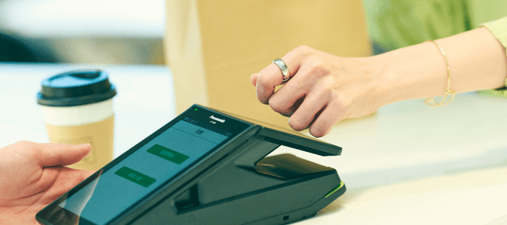 気にせず、瞬時に決済できる防水だから、リングをつけたまま