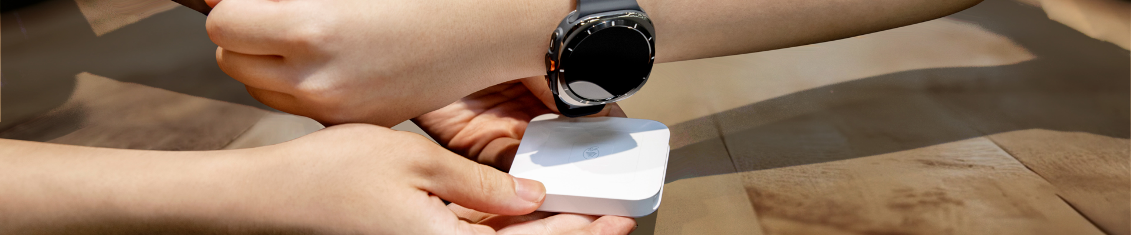 手をさっとかざすだけで決済完了充電は一切不要。電池残量を