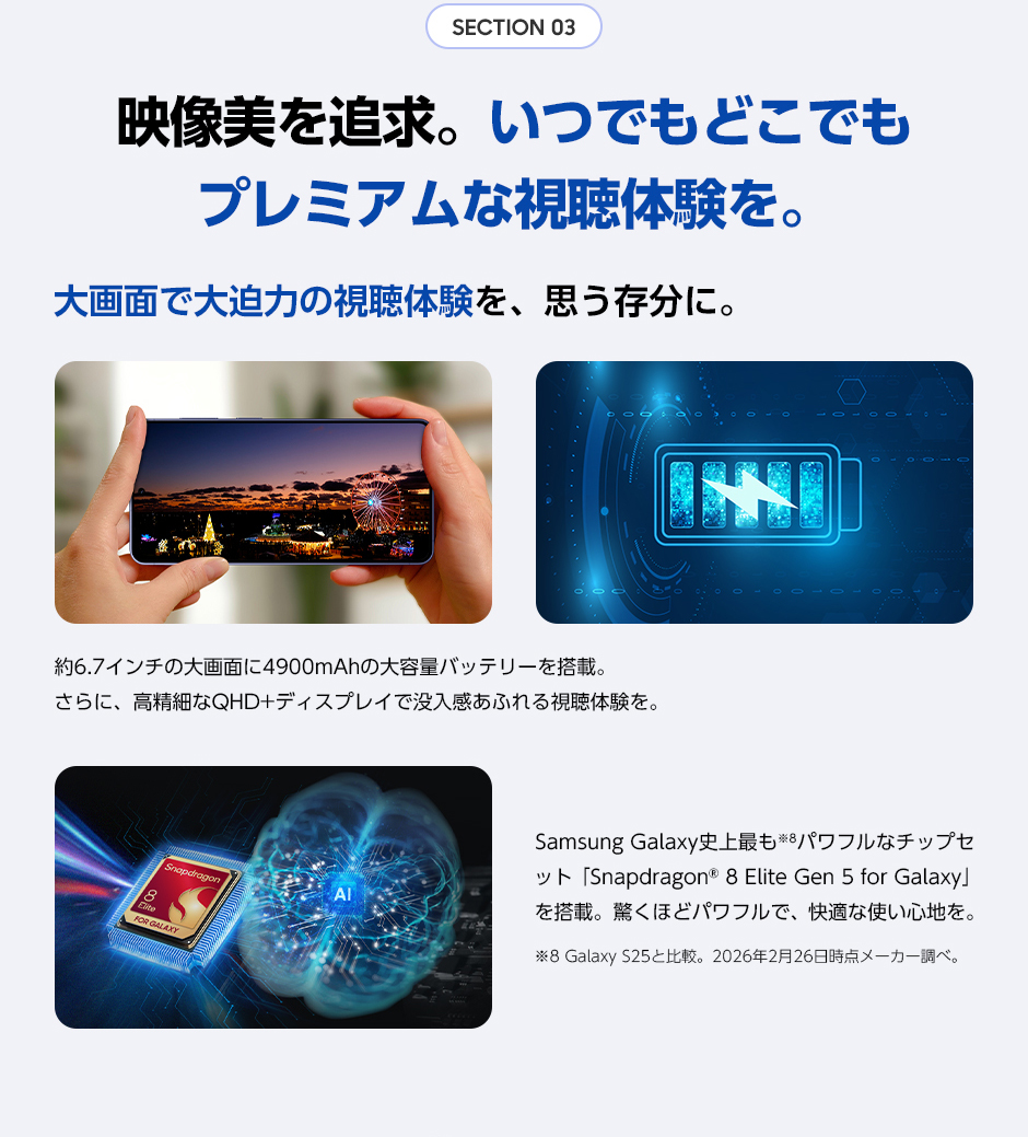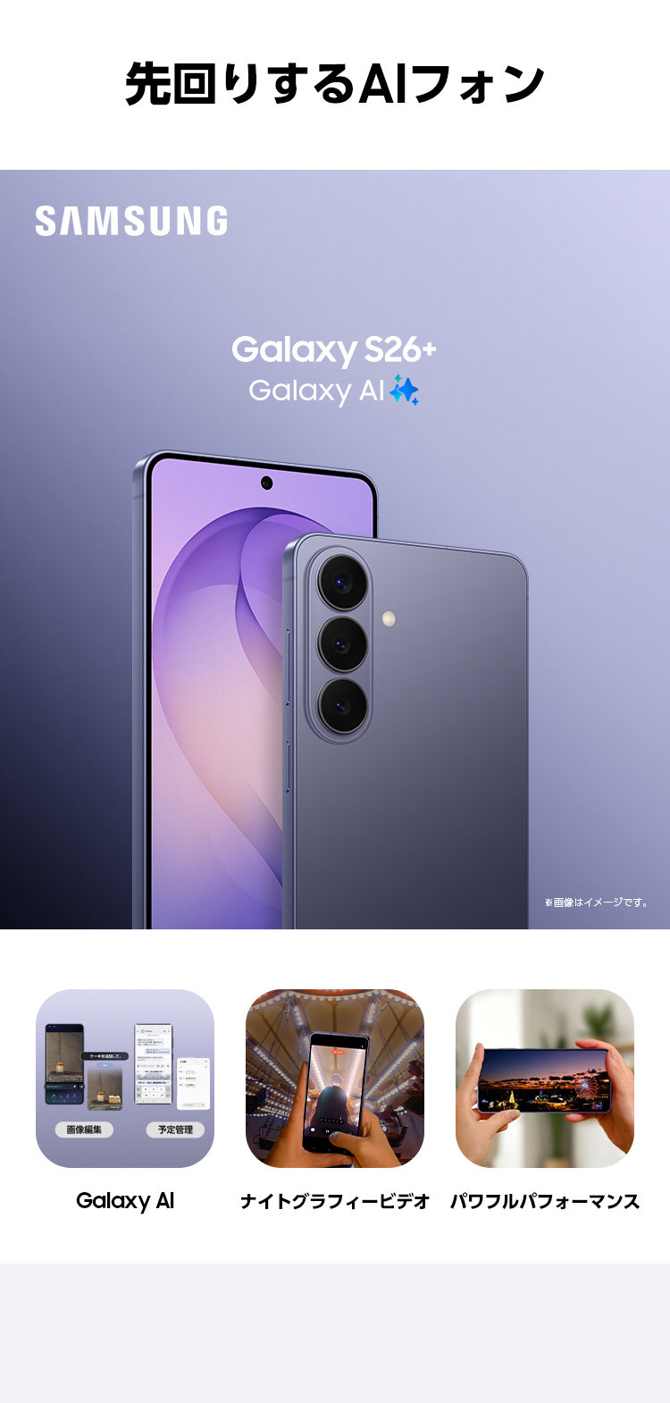 「Samsung Galaxy S26+ SC-52G」発売に先立ち、2026年2月26日(木曜)午前9時00分より販売開始前日まで事前予約を受付けいたします。
