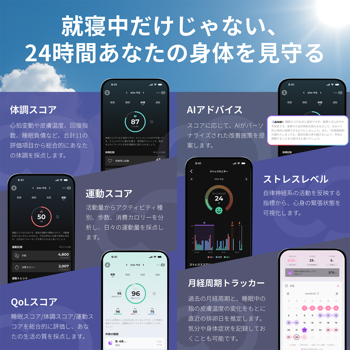 これまでスマートウォッチやスマホアプリで睡眠計測が続かなかった方も、きっと睡眠計測が日常になります。