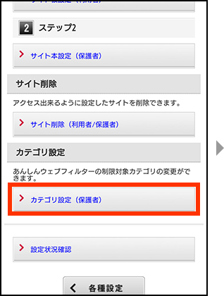 カテゴリごとにアクセスの制限・許可を変更することができます。設定は保護者の方が行ってください。