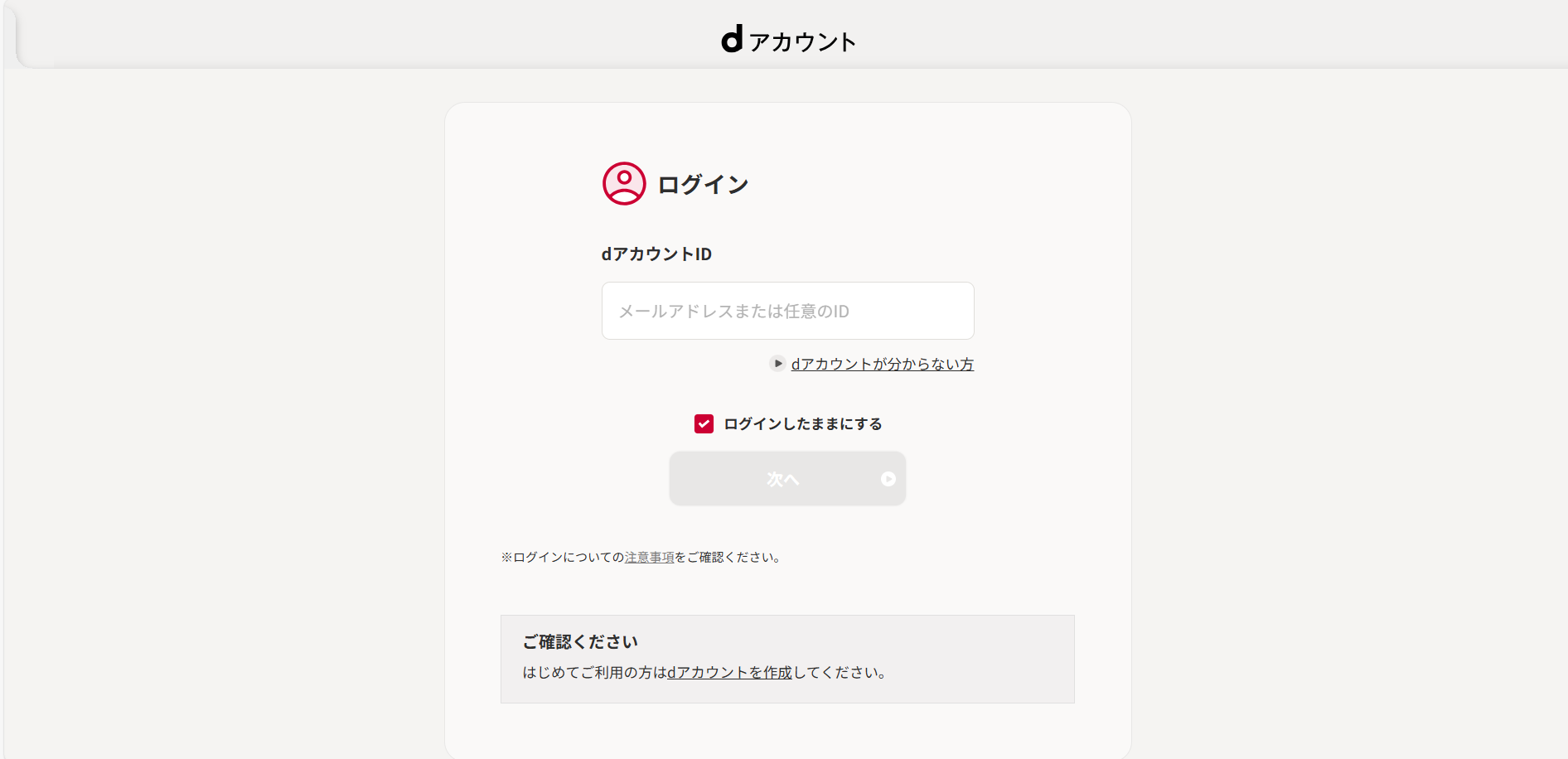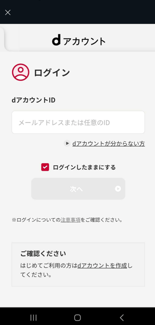 ※シリアルコードの有効期限は5分です。【4】dアカウント入力画面につながります。ご登録済みのdアカウントのIDとパスワードにてログインしてください。