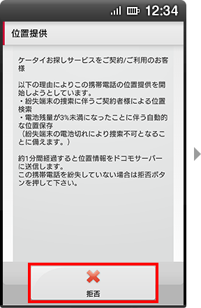 - 「ケータイお探しサービスの検索拒否設定」のサイト移行にはパケット通信料がかかりません。