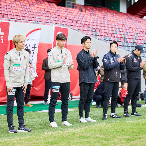 宮崎選手、久保選手は「サッカー選手はファンやサポーターに夢を与えられる存在だと改めて実感できた」「災害復興を含め、応援していただいている地域のみなさんに恩返しをしていきたい」と口をそろえ、人の心を動かすチーム活動に喜びを感じていました。