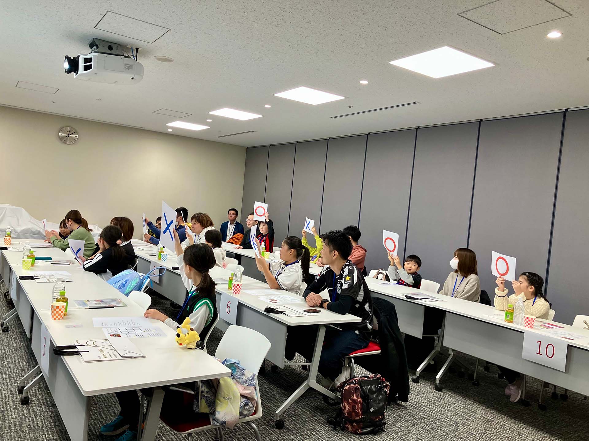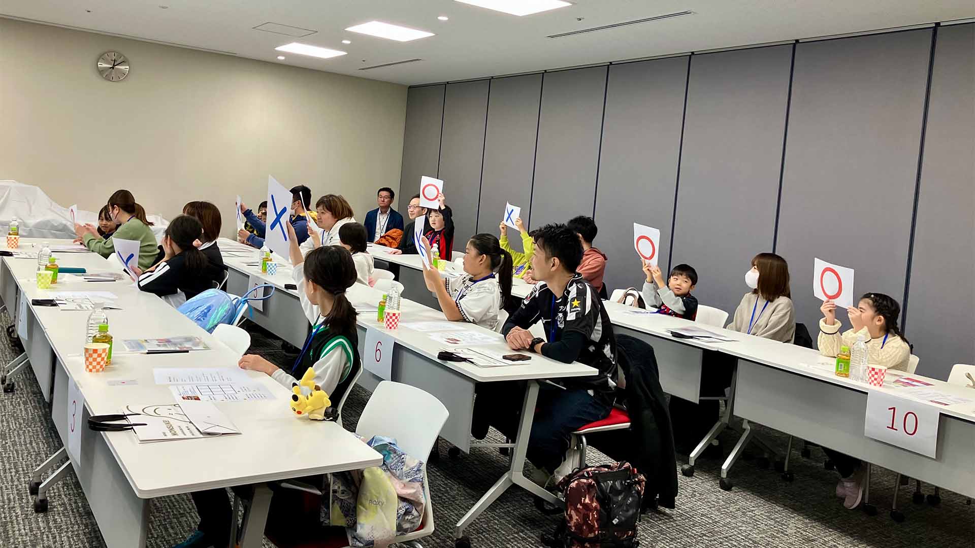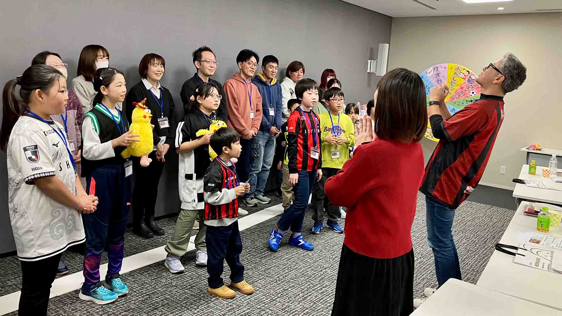 自分の好きな選手の背番号を書き込んでいるとあって、会場はそれぞれが選んだ選手を応援しているような雰囲気になっていきました。グッチーさんが背番号を読み上げる度に、保護者と顔を見合わせて喜んだり、がっかりしたりしながらも、ゲームを楽しんでくれました。