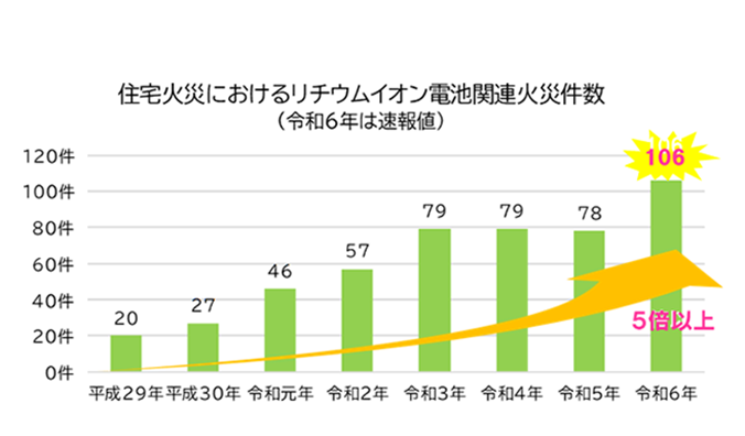 - 詳しくは、東京消防庁「住宅でも注意!リチウムイオン電池関連火災